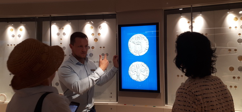 auch einen "Stadttag" eingelegt. Zuerst ging es ins Geldmuseum in Budapest. Das im letzten Jahr eröffnete Museum wurde gerade mit einem Preis der Europäischen Museumsakademie ausgezeichnet, unter anderem wegen seiner modernen effektiven Museumspädagogik. Die Beschriftung ist übrigens in ungarisch, englisch und chinesisch! |