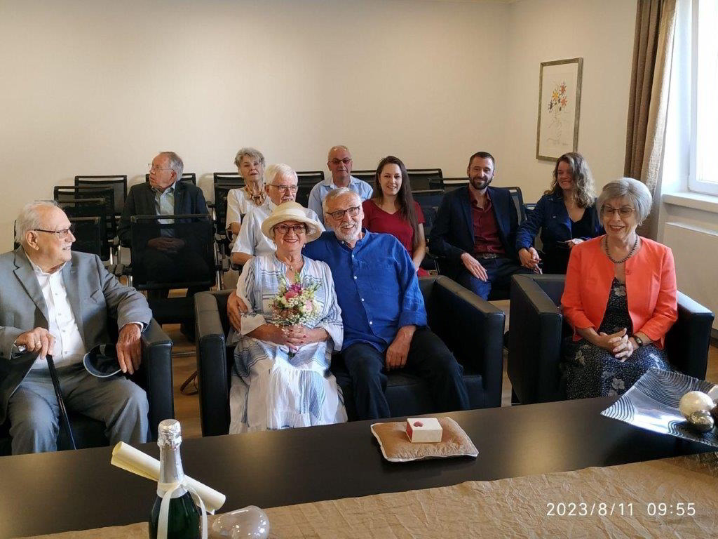 fürs Leben" zu schließen. Nachdem wir alle zwischenstaatlichen Formalitäten für eine Eheschließung (Maria: Ungarin, Jupp: Deutscher) erfüllt hatten, ging es am 11. August vormittags um 10:00 Uhr zur Trauung ins Standesamt in Rüdesheim. |