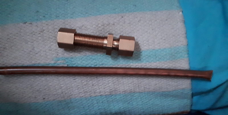 jetzt 7 Jahre alt und ich habe schon seit 2 Jahren neue an Bord. Ein Problem bereitet mir der Übergang vom Schlauch zum fest verlegten Kupferrohr in der Kajüte. In Griechenland arbeitet man hier wohl mit Plastik. Nach langer Suche finde ich eine Werkstatt, die Kühlschränke und Klimaanlagen repariert. Sie schenken mir ein passendes Stück 8 mm Kupferrohr. |