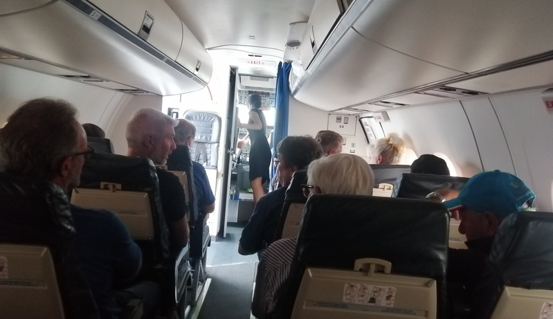 dann nach 6 Stunden Aufenthalt im Flughafen weiter nach Leros. Der Flieger nach Leros ist wohl das kleinste Flugzeug von Olympicair, eine wohl schon etwas in die Jahre gekommene DHC-8-100 mit ganzen 37 Sitzplätzen. Wir sind gegen 18:30 Uhr gut auf Leros angekommen und spazieren die etwa 500m zur Marina Moor&Dock zur Walkabout. |