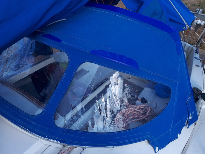 Sideris (der nur wenig englisch spricht, und den wir über eine email an seine Tochter erreichen) hat unsere Sprayhood überarbeitet und verlangt dafür nur 60 €. |