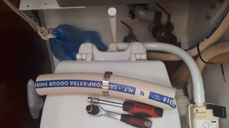Als nächstes: eine weniger angenehme Arbeit: den Kugelhahn am Auslass des Fäkalientanks muss ich wieder gängig machen... |